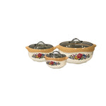 Product details of Homecare Floretta Hotpot 3pcs with glass Lid Made from premium quality plastic, the functional lid of the casseroles make opening and closing the casseroles easy The steel...