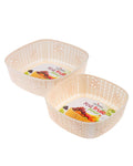 These Estillo Multipurpose Vanity Shelf Storage Baskets are made from premium plastic material and designed in luxurious, royal wavy pattern. Versatile and stylish storage to organize any space in your home or office and that will add great value to your surroundings Storage baskets are great to be used as storage for fruits, beauty products, stationary and other home & office products Home & office shelf/desktop organizers. There are 2 baskets of different sizes in this set with following dimensions: