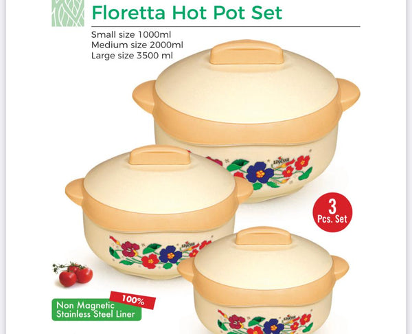 Product details of Homecare Floretta Hotpot 3pcs with Plastic Lid Made from premium quality plastic, the functional lid of the casseroles make opening and closing the casseroles easy The steel...