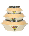 • All three casseroles/hotpots are made from premium quality plastic and come with high quality inside steel round containers that keep your food warm for a long time